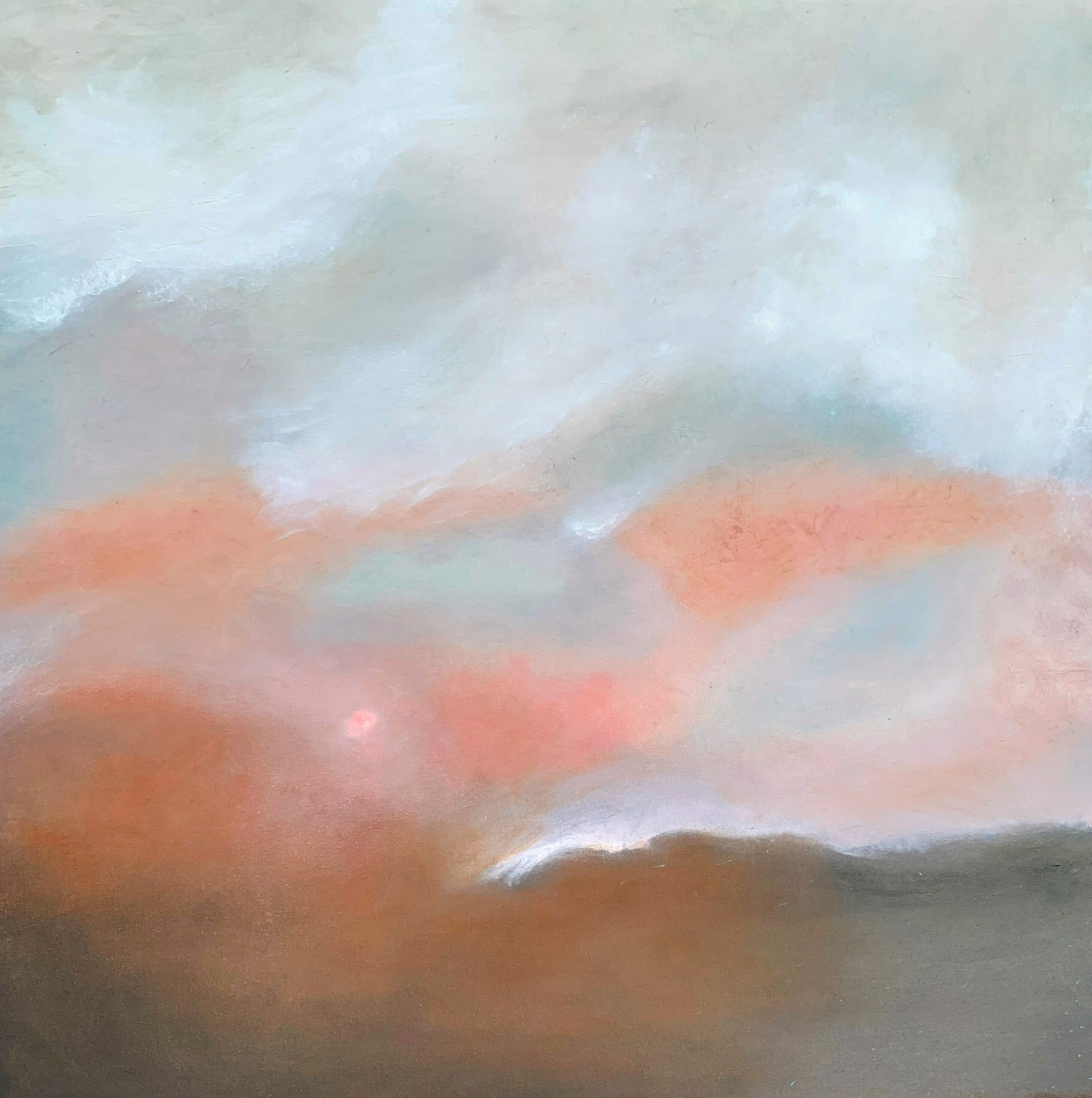 Dans un dialogue subtil entre roses lumineux et gris bleutés, la lumière émerge doucement à l’horizon. Les formes se dissolvent pour laisser place à une sensation de calme suspendu, comme cet instant fragile entre nuit et jour.
